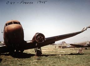 C-47 no.308, piloted by Captain R. E. Bohannan, was hit by flack.